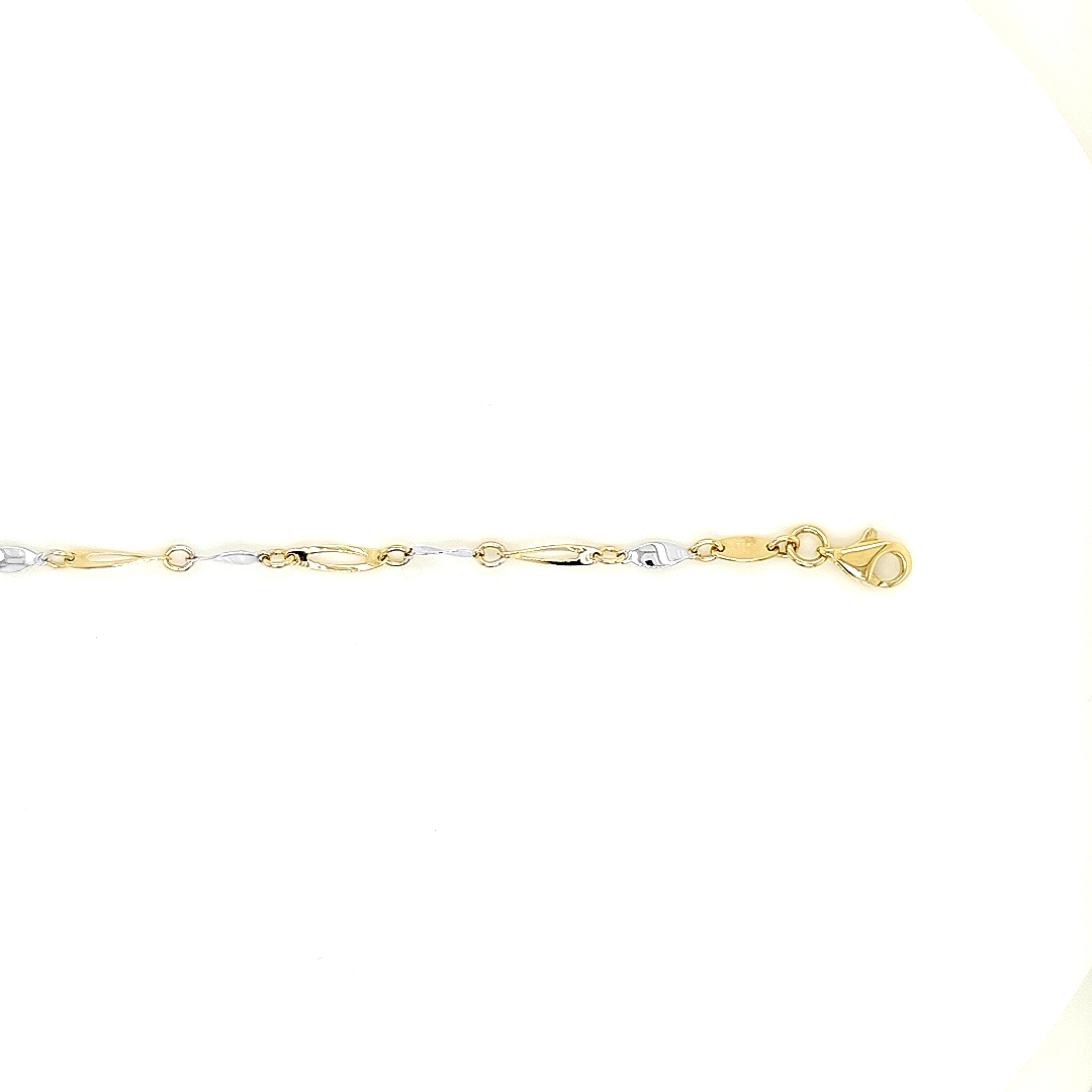Deze bicolor gouden armband heeft een fijne uitstraling, maar is stevig en solide gemaakt, de schakels zijn namelijk massief. De armband is volledig glad gepolijst. De lengte van de armband is 19cm.