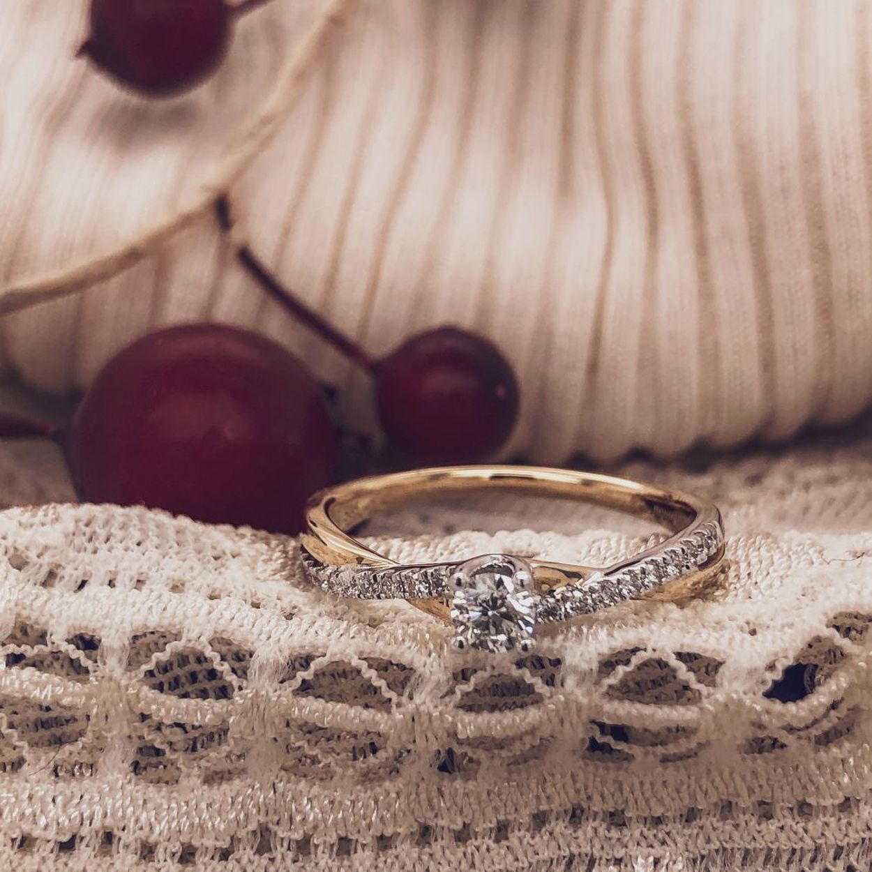 bicolor gouden overslag ring met0.32ct briljant, mt56