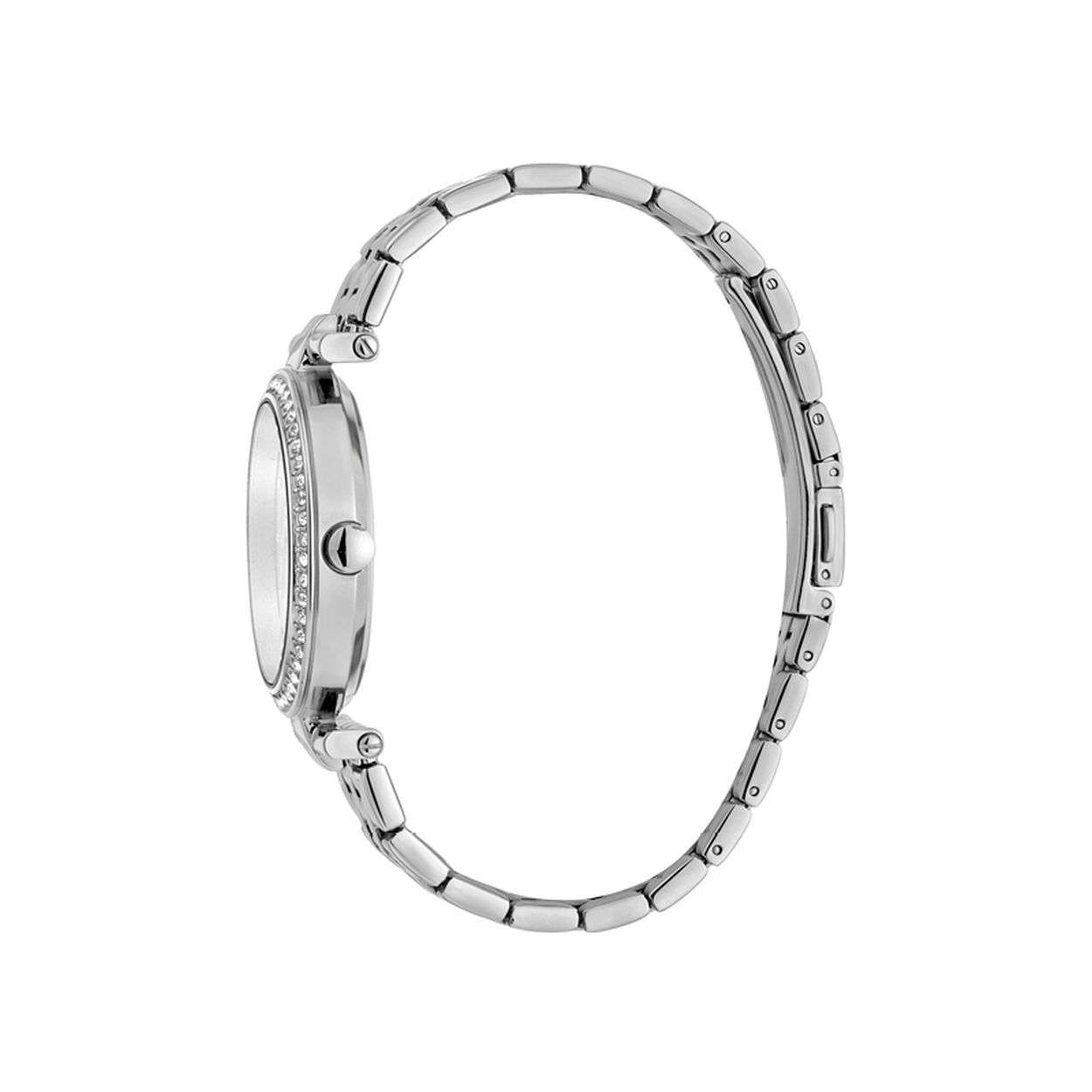 - Zilverkleurige stalen horlogekast bezet met stenen
