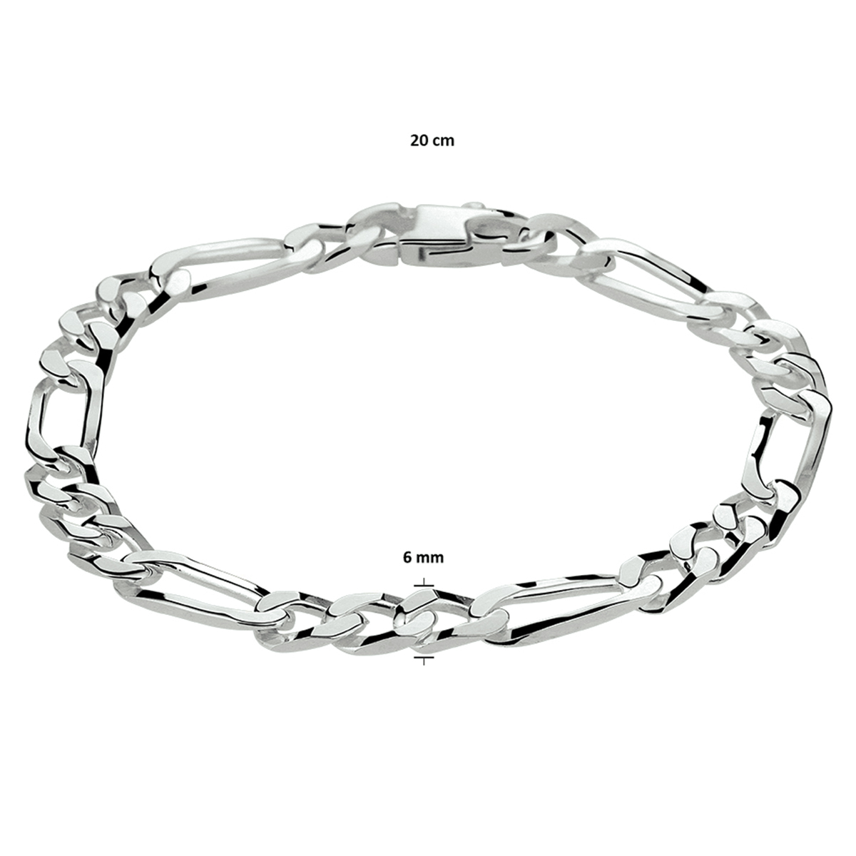 Beschrijving: Stijlvolle zilveren armband met een figaro schakel. De armband heeft een draaglengte van 20cm en een schakelbreedte van 6mm. Uitgevoerd met een stevige karabijn sluiting.
