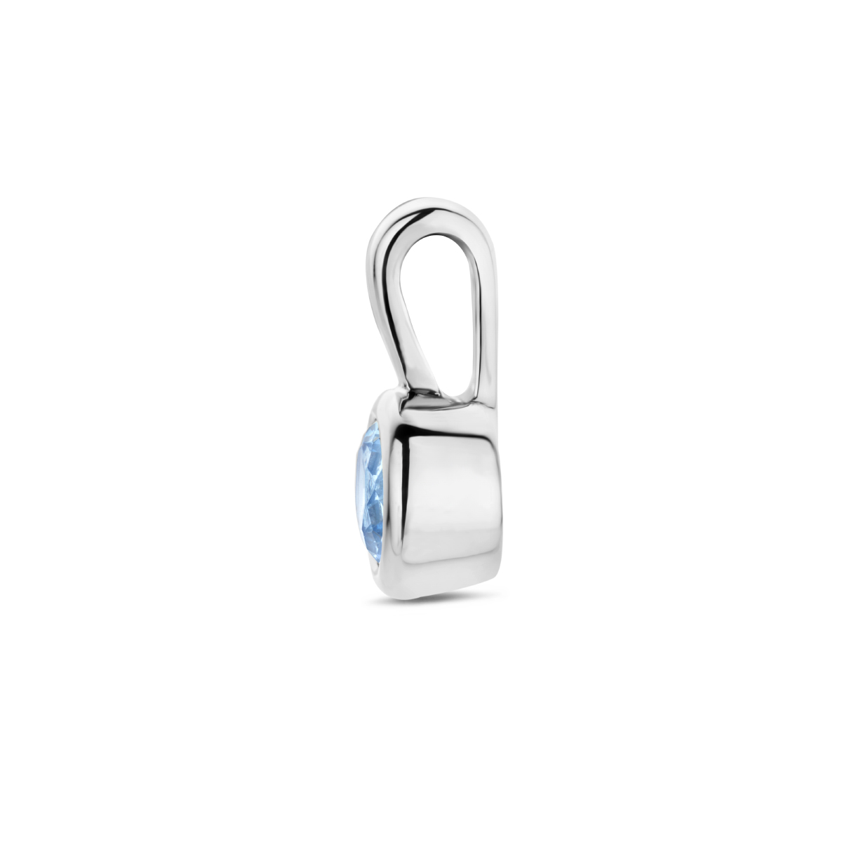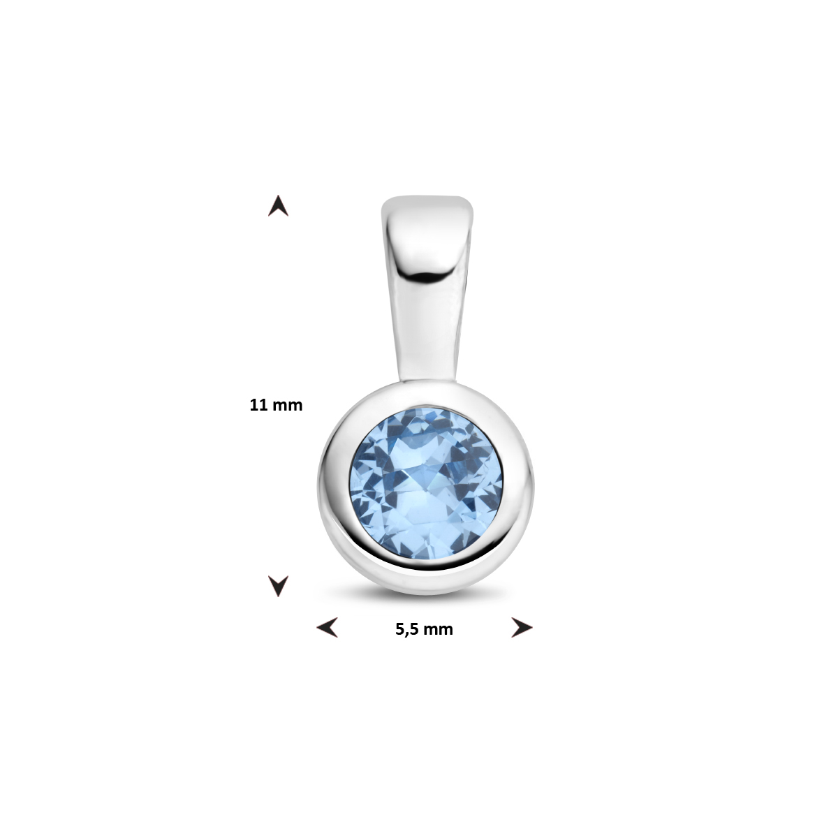 Gerhodineerd 925 zilveren hanger met geboortesteen uitgevoerd met een synthetische aquamarijn. De hanger heeft een afmeting van 11x5.5mm.