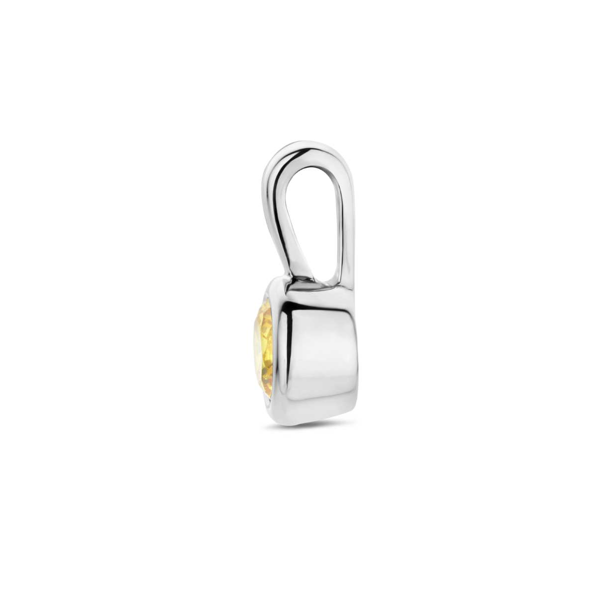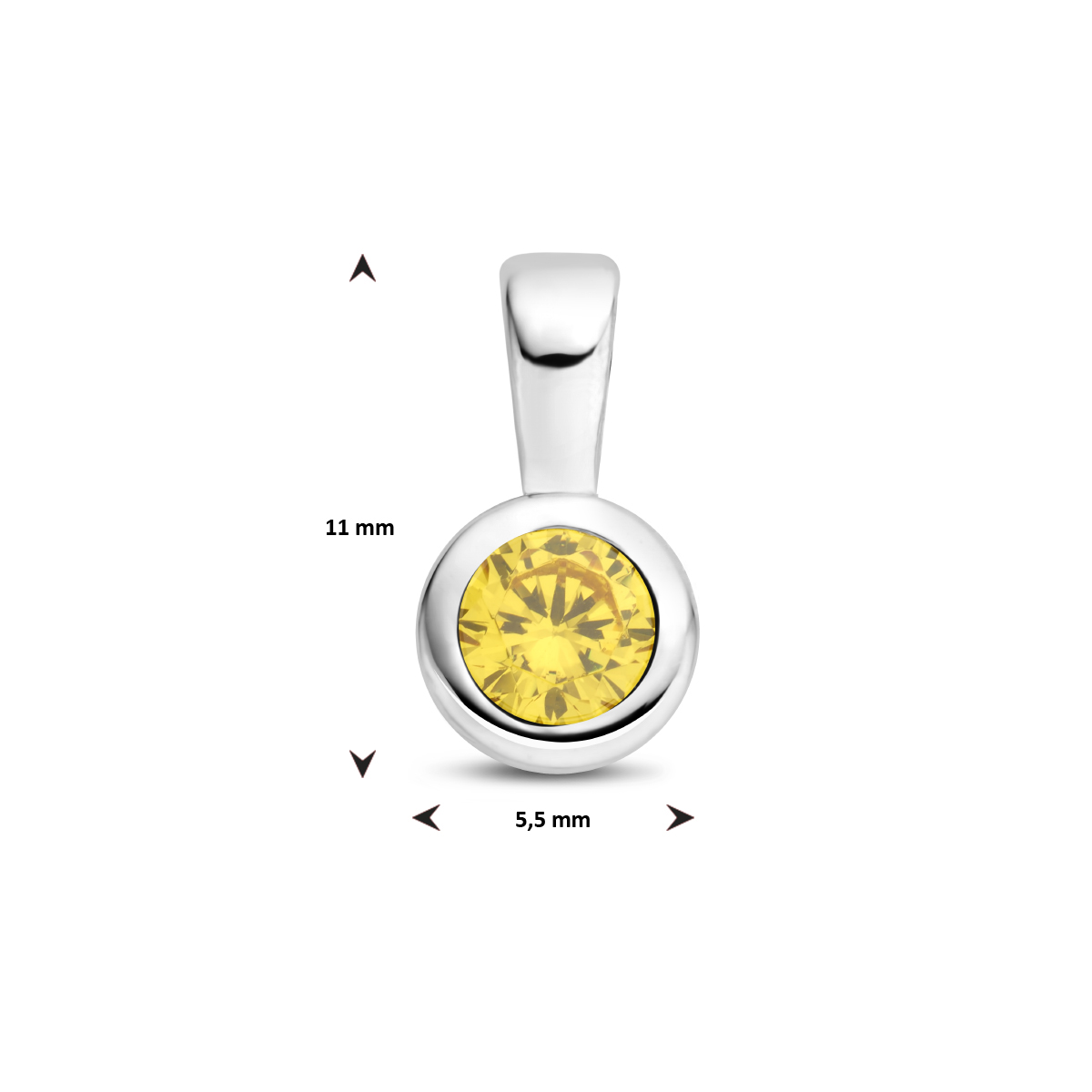 Gerhodineerd 925 zilveren hanger met geboortesteen uitgevoerd met een geel zirkonia. De hanger heeft een afmeting van 11x5.5mm.