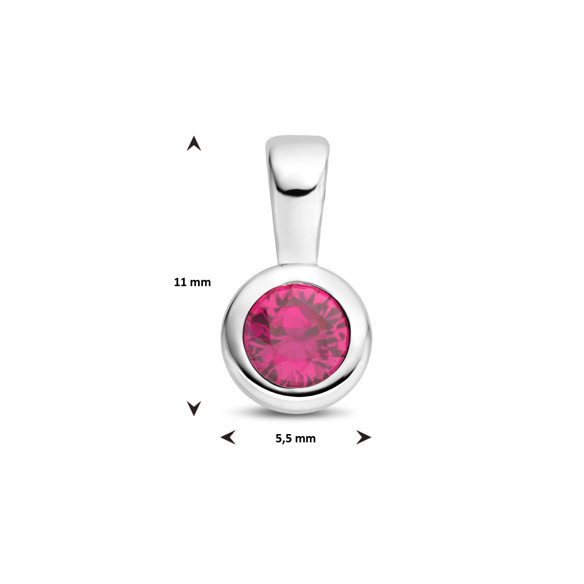 Gerhodineerd 925 zilveren hanger met geboortesteen uitgevoerd met een synthetische robijn. De hanger heeft een afmeting van 11x5.5mm.