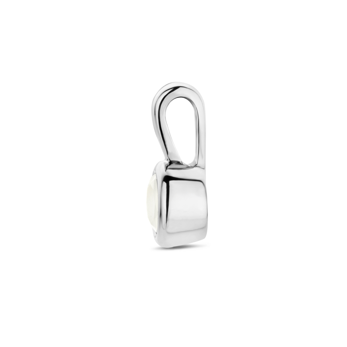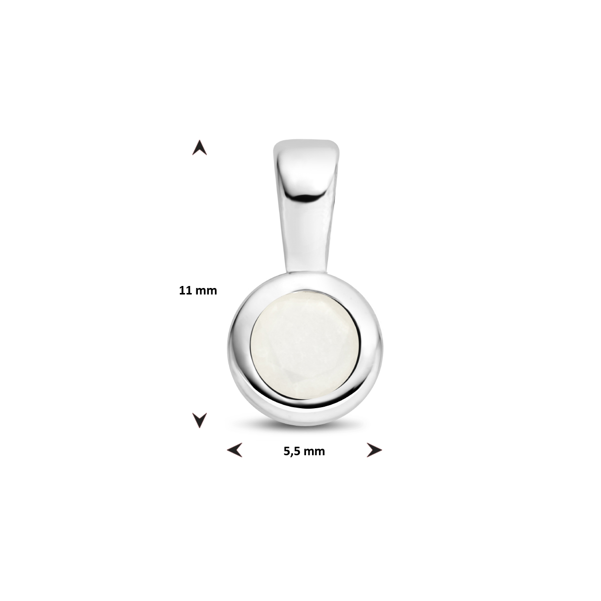 Gerhodineerd 925 zilveren hanger met geboortesteen uitgevoerd met een wit agaat. De hanger heeft een afmeting van 11x5.5mm.