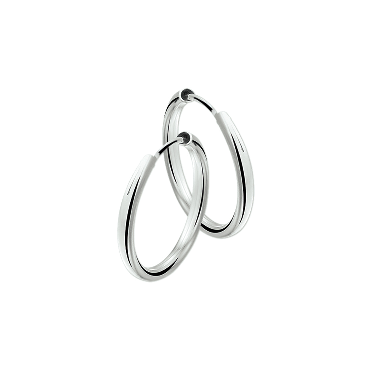 Zilveren creolen met een ronde buis en een dop-sluiting.