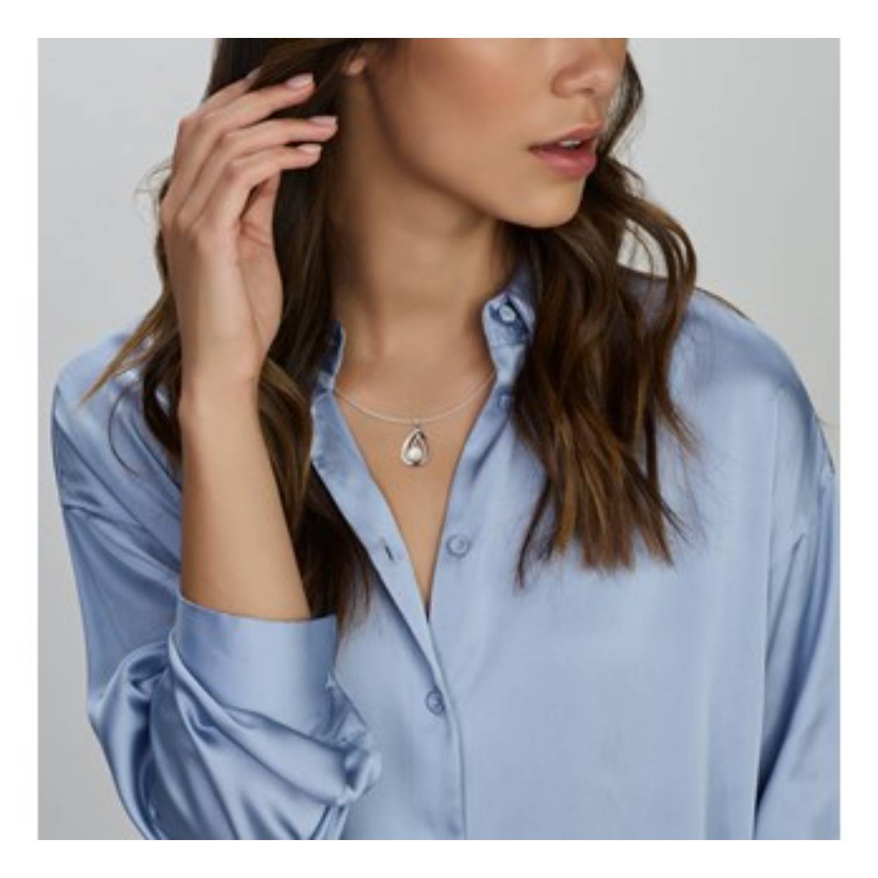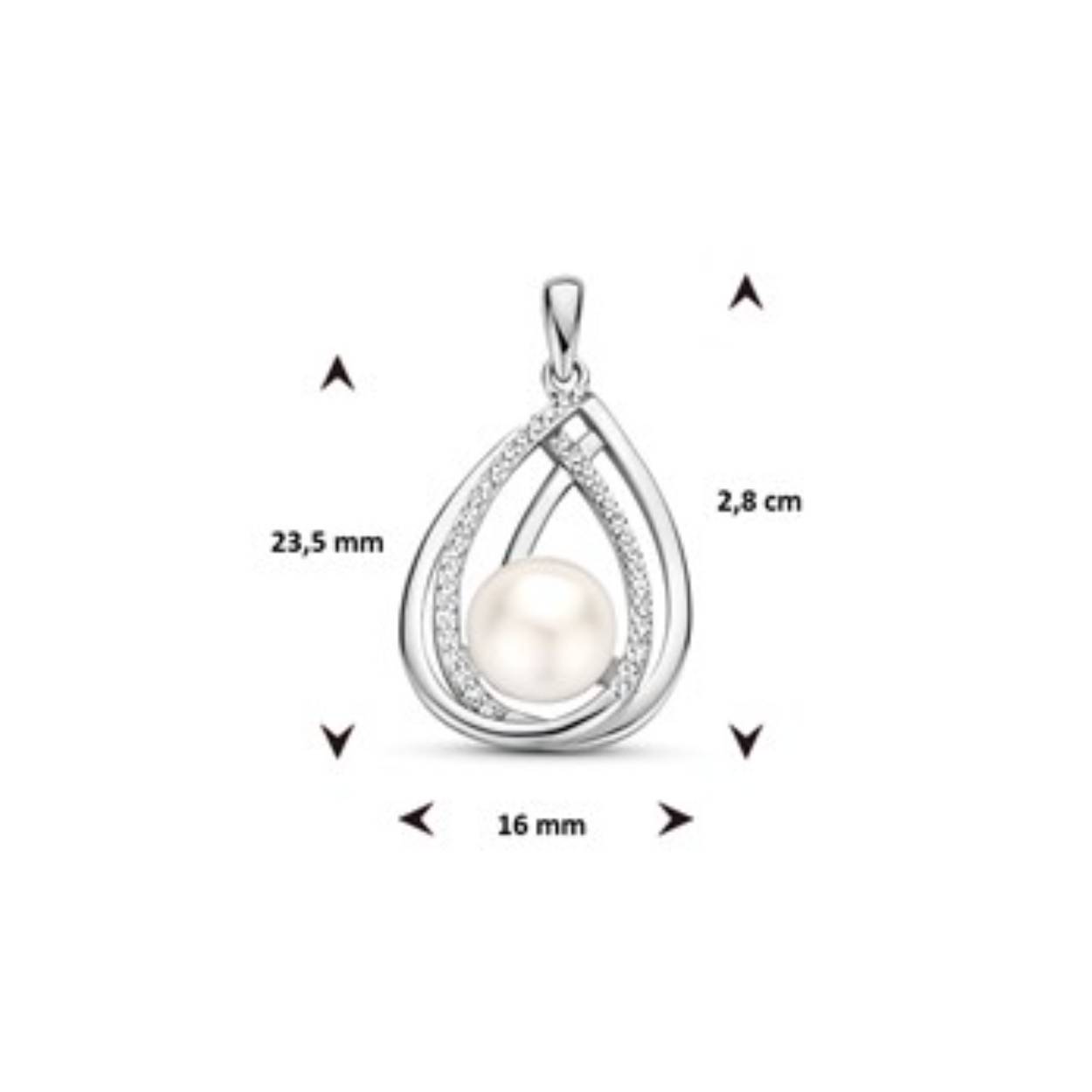 Gerhodineerd 925 zilveren hanger uitgevoerd met een schitterende parel en zirkonia rij. De hanger heeft een totale hoogte van 2.8cm en een breedte van 16mm. De parel heeft een diameter van 8.5mm.