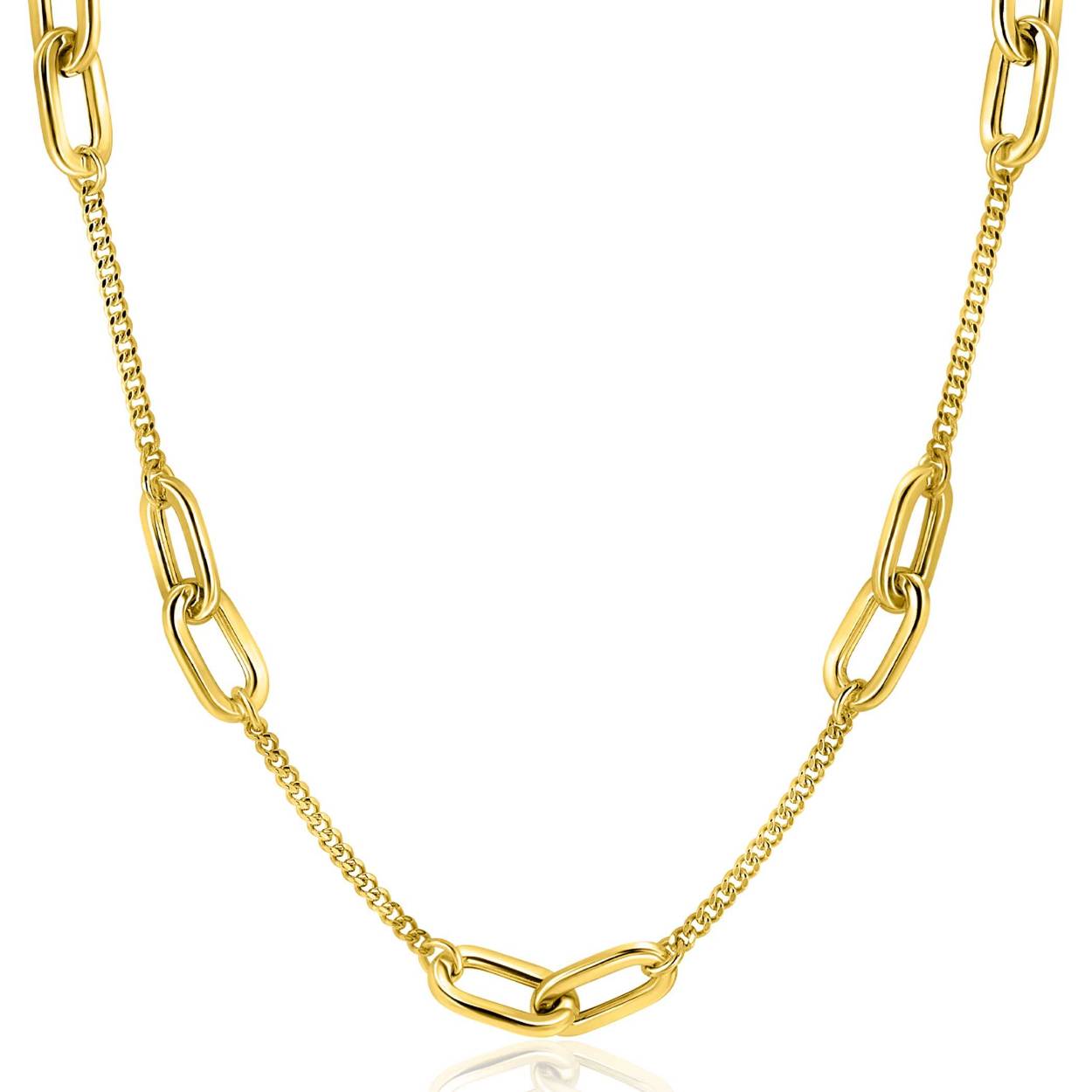ZINZI gold plated zilveren ketting met gourmet schakels, afgewisseld met grotere ovale schakels 42-45cm ZIC2412G